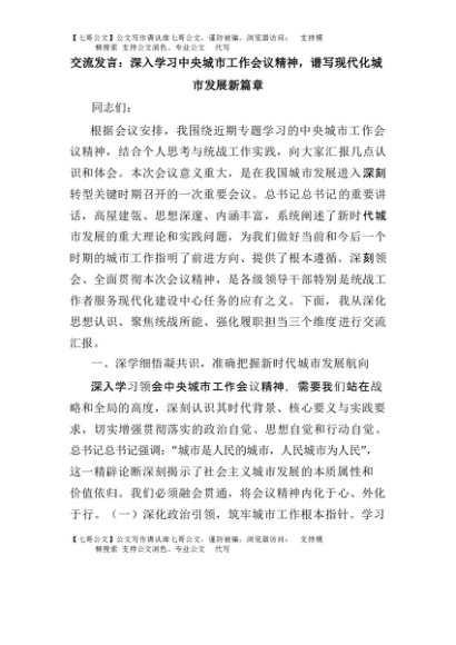 【七哥公文】2025年:交流发言:深入学习中央城市工作会议精神,谱写现代化城市发展新篇章+更多免费公文+VX:QiGeGongWen2024