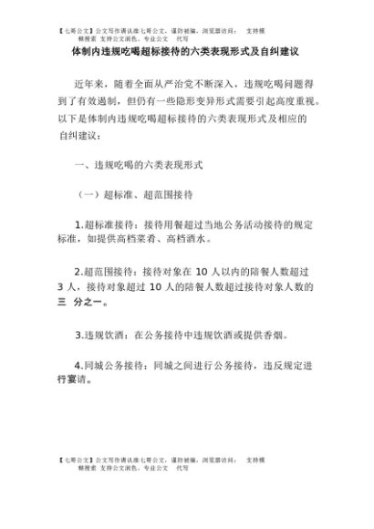 / 【七哥公文】2025年:体制内违规吃喝超标接待的六类表现形式及自纠建议+更多免费公文+VX:QiGeGongWen2024