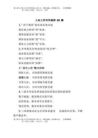 / 【七哥公文】2025年:人社工作写作提纲30例+更多免费公文+VX:QiGeGongWen2024