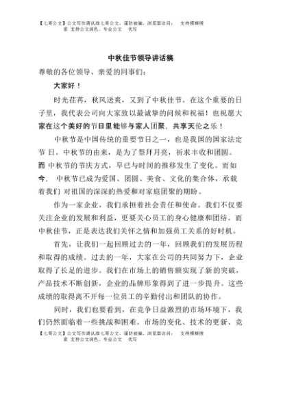 【七哥公文】2025年:中秋佳节领导讲话稿+更多免费公文+VX:QiGeGongWen2024