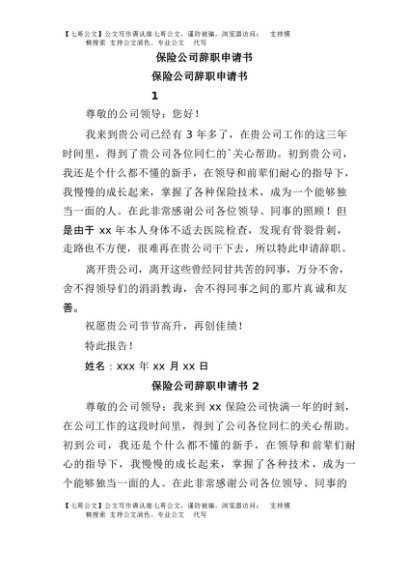 / 【七哥公文】2025年:保险公司辞职申请书+更多免费公文+VX:QiGeGongWen2024