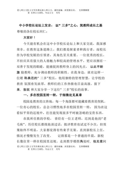 【七哥公文】2025年:中小学校长论坛上发言:以“三多”之心,筑教师成长之基+更多免费公文+VX:QiGeGongWen2024