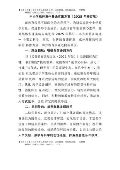 / 【七哥公文】2025年:中小学教师集体备课实施方案(2025年修订版)+更多免费公文+VX:QiGeGongWen2024