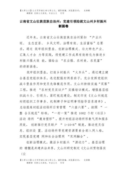 【七哥公文】2025年:云南省文山壮族苗族自治州:党建引领绘就文山州乡村振兴新画卷+更多免费公文+VX:QiGeGongWen2024