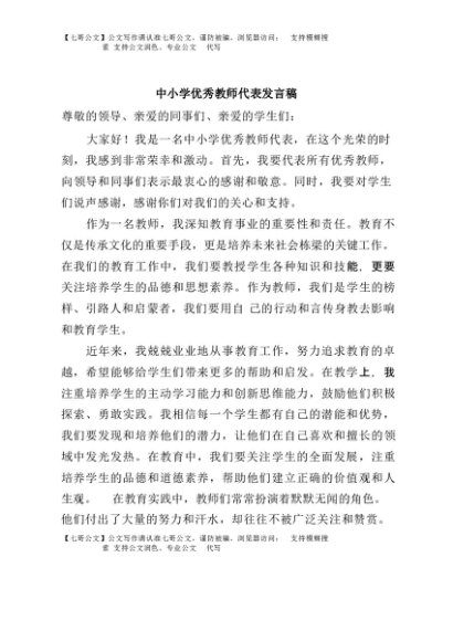 / 【七哥公文】2025年:中小学优秀教师代表发言稿+更多免费公文+VX:QiGeGongWen2024