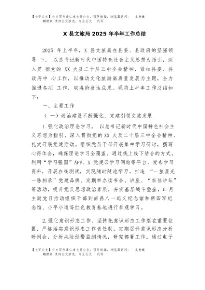 / 【七哥公文】2025年:X县文旅局2025年半年工作总结+更多免费公文+VX:QiGeGongWen2024
