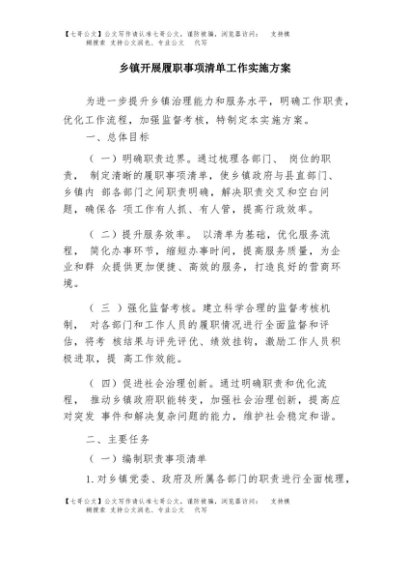 / 【七哥公文】2025年:乡镇开展履职事项清单工作实施方案+更多免费公文+VX:QiGeGongWen2024