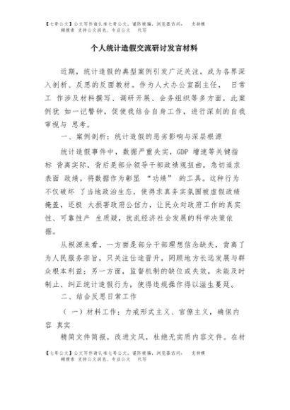 【七哥公文】2025年:个人统计造假交流研讨发言材料+更多免费公文+VX:QiGeGongWen2024