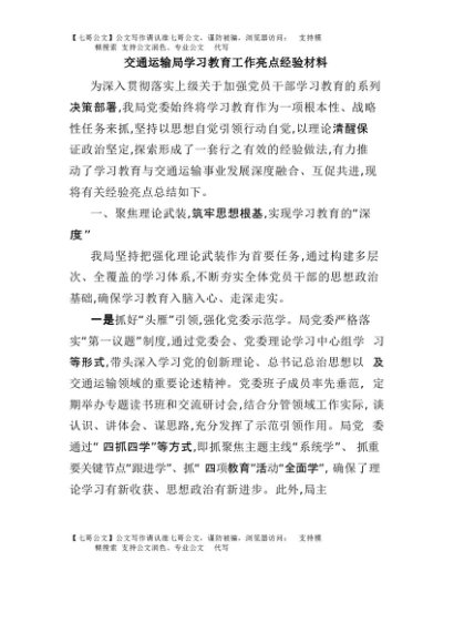 【七哥公文】2025年:交通运输局学习教育工作亮点经验材料+更多免费公文+VX:QiGeGongWen2024