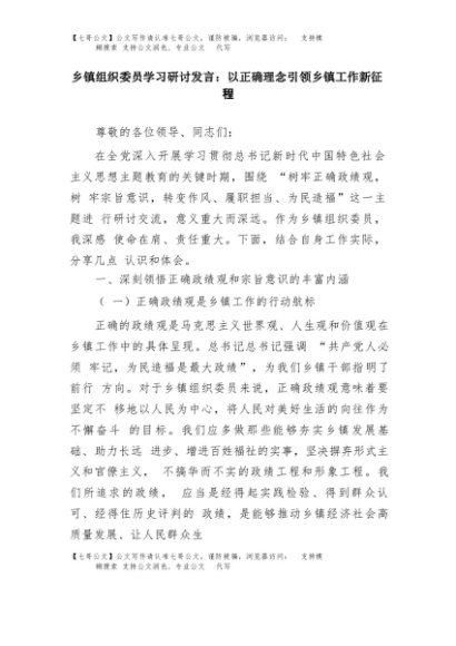 【七哥公文】2025年:乡镇组织委员学习研讨发言:以正确理念引领乡镇工作新征程+更多免费公文+VX:QiGeGongWen2024