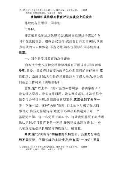 / 【七哥公文】2025年:乡镇组织委员学习教育评估座谈会上的发言+更多免费公文+VX:QiGeGongWen2024