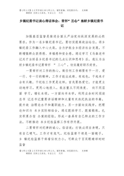 【七哥公文】2025年:乡镇纪委书记谈心得话体会:常怀“三心” 当好乡镇纪委书记+更多免费公文+VX:QiGeGongWen2024