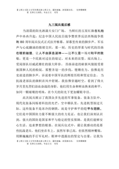 / 【七哥公文】2025年:九三阅兵观后感+更多免费公文+VX:QiGeGongWen2024