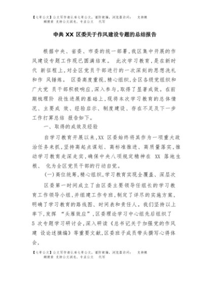 / 【七哥公文】2025年:中共XX区委关于作风建设专题的总结报告+更多免费公文+VX:QiGeGongWen2024