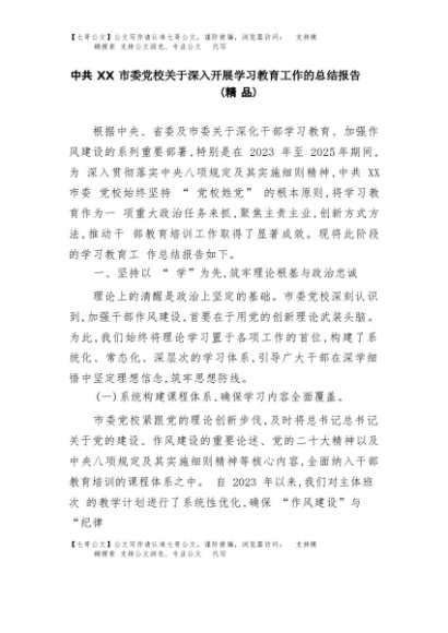 【七哥公文】2025年:中共XX市委党校关于深入开展学习教育工作的总结报告(精品)+更多免费公文+VX:QiGeGongWen2024