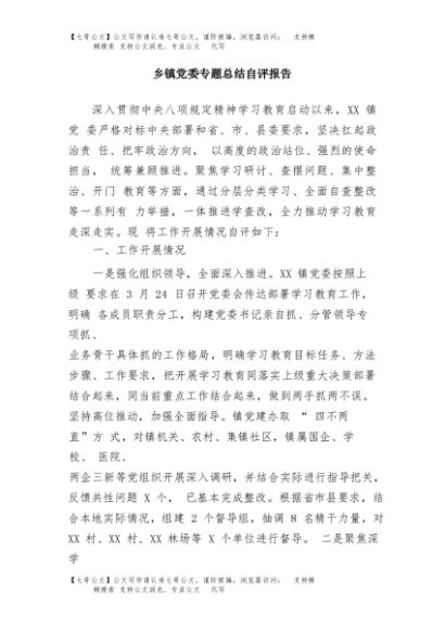 【七哥公文】2025年:乡镇党委专题总结自评报告+更多免费公文+VX:QiGeGongWen2024