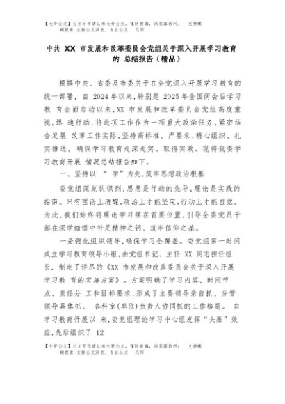 【七哥公文】2025年:中共XX市发展和改革委员会党组关于深入开展学习教育的总结报告(精品)+更多免费公文+VX:QiGeGongWen2024