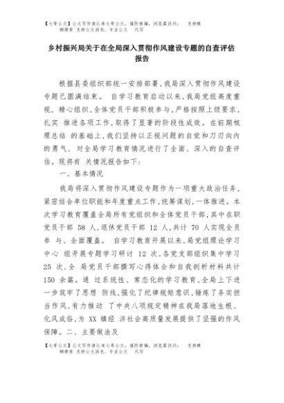 【七哥公文】2025年:乡村振兴局关于在全局深入贯彻作风建设专题的自查评估报告+更多免费公文+VX:QiGeGongWen2024