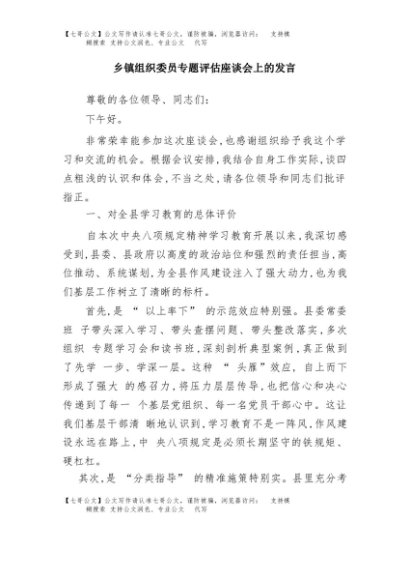 / 【七哥公文】2025年:乡镇组织委员专题评估座谈会上的发言+更多免费公文+VX:QiGeGongWen2024