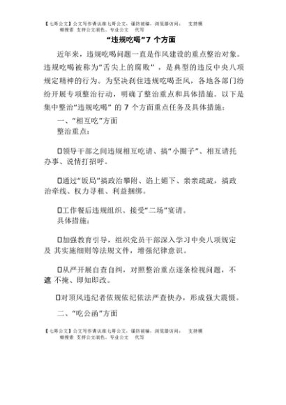 【七哥公文】2025年:“违规吃喝”7个方面+更多免费公文+VX:QiGeGongWen2024