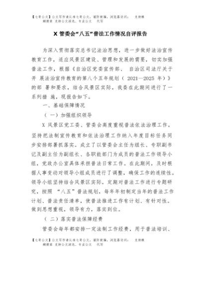 / 【七哥公文】2025年:X管委会“八五”普法工作情况自评报告+更多免费公文+VX:QiGeGongWen2024