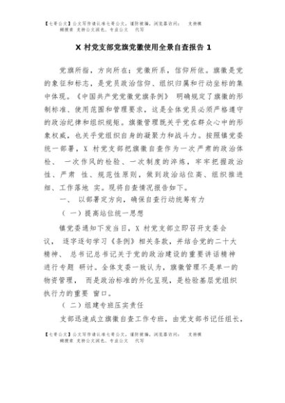 / 【七哥公文】2025年:X村党支部党旗党徽使用全景自查报告1+更多免费公文+VX:QiGeGongWen2024