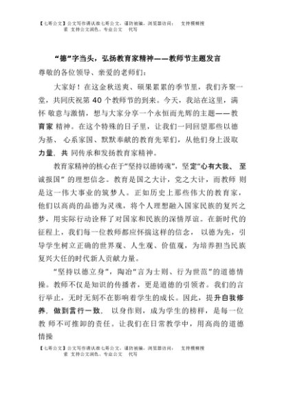 / 【七哥公文】2025年:“德”字当头,弘扬教育家精神——教师节主题发言+更多免费公文+VX:QiGeGongWen2024
