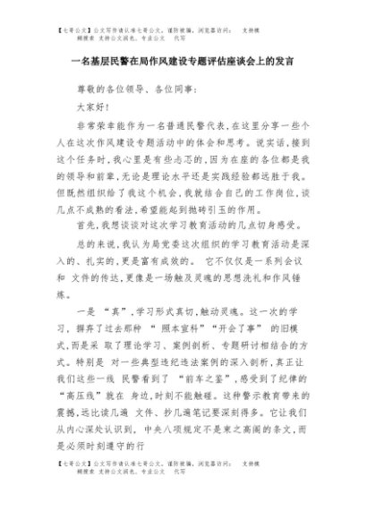 / 【七哥公文】2025年:一名基层民警在局作风建设专题评估座谈会上的发言+更多免费公文+VX:QiGeGongWen2024