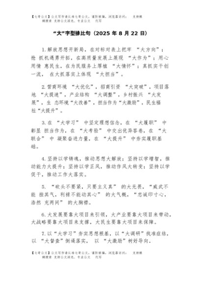 / 【七哥公文】2025年:“大”字型排比句(2025年9月)+更多免费公文+VX:QiGeGongWen2024