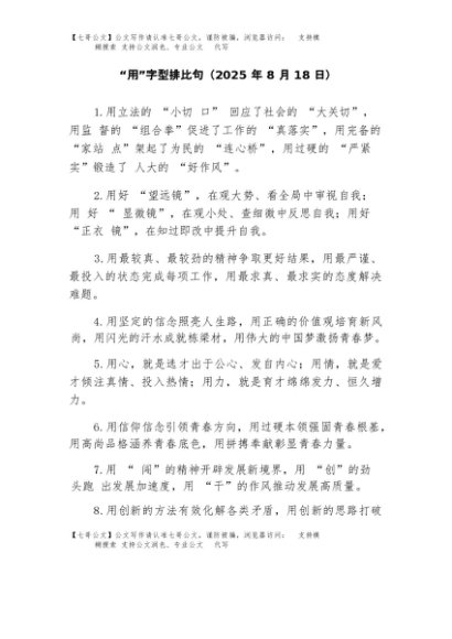 / 【七哥公文】2025年:“用”字型排比句(2025年8月)+更多免费公文+VX:QiGeGongWen2024