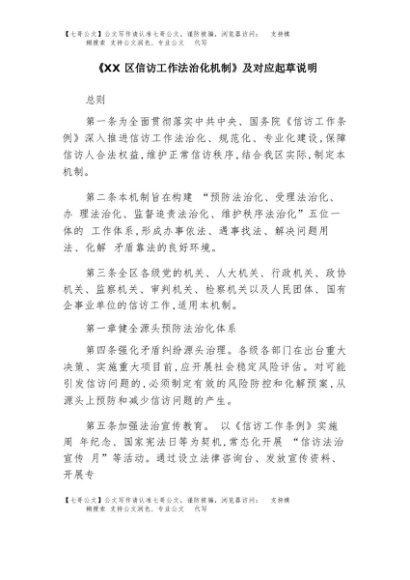 【七哥公文】2025年:《XX区信访工作法治化机制》及对应起草说明+更多免费公文+VX:QiGeGongWen2024