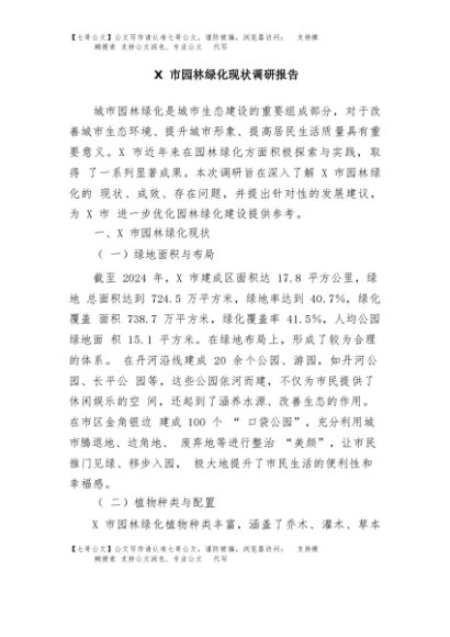 / 【七哥公文】2025年:X市园林绿化现状调研报告+更多免费公文+VX:QiGeGongWen2024