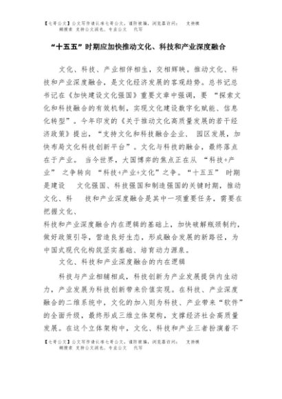 【七哥公文】2025年:“十五五”时期应加快推动文化、科技和产业深度融合+更多免费公文+VX:QiGeGongWen2024