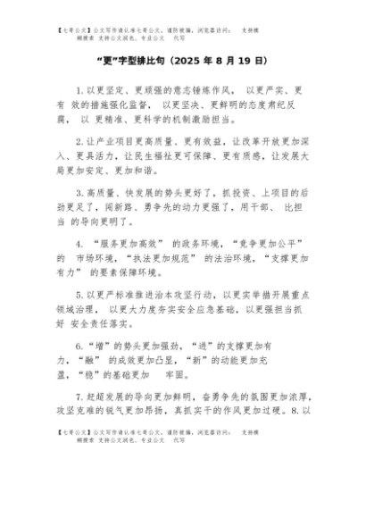 / 【七哥公文】2025年:“更”字型排比句(2025年9月)+更多免费公文+VX:QiGeGongWen2024