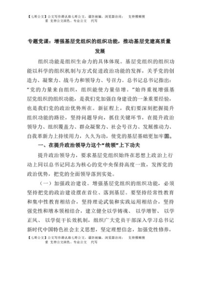 【七哥公文】2025年:专题党课:增强基层党组织的组织功能,推动基层党建高质量发展+更多免费公文+VX:QiGeGongWen2024