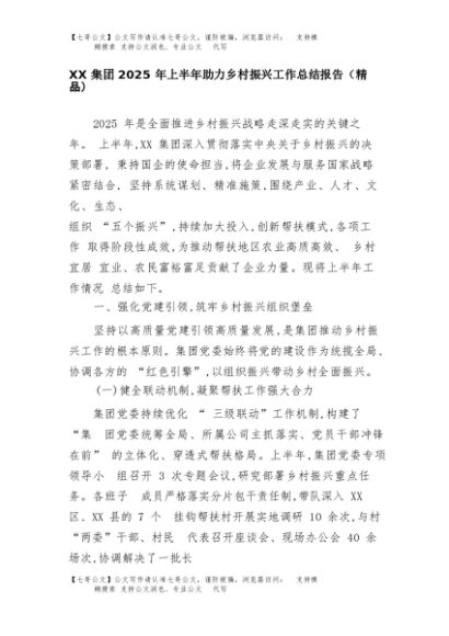 【七哥公文】2025年:XX集团2025年上半年助力乡村振兴工作总结报告(精品)+更多免费公文+VX:QiGeGongWen2024