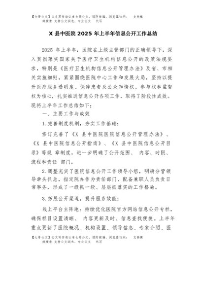 / 【七哥公文】2025年:X县中医院2025年上半年信息公开工作总结+更多免费公文+VX:QiGeGongWen2024