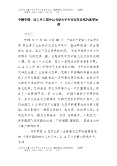 【七哥公文】2025年:专题党课:深入学习领会总书记关于全面深化改革的重要论述+更多免费公文+VX:QiGeGongWen2024
