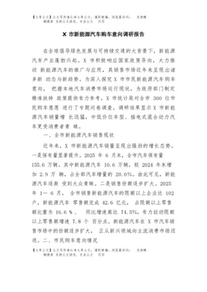 / 【七哥公文】2025年:X市新能源汽车购车意向调研报告+更多免费公文+VX:QiGeGongWen2024