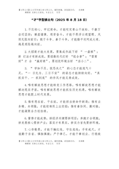 【七哥公文】2025年:“才”字型排比句(2025年9月)+更多免费公文+VX:QiGeGongWen2024