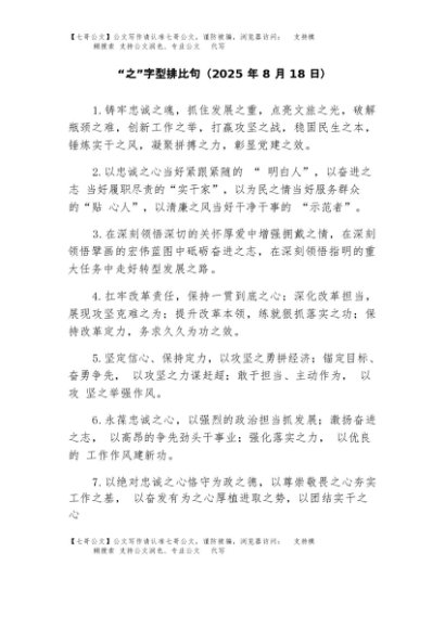/ 【七哥公文】2025年:“之”字型排比句(2025年8月)+更多免费公文+VX:QiGeGongWen2024