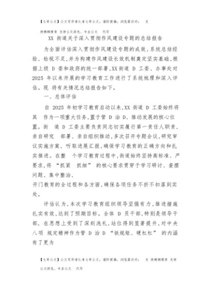 / 【七哥公文】2025年:XX街道关于深入贯彻作风建设专题的总结报告+更多免费公文+VX:QiGeGongWen2024