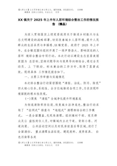 【七哥公文】2025年:XX镇关于2025年上半年人居环境综合整治工作的情况报告(精品)+更多免费公文+VX:QiGeGongWen2024