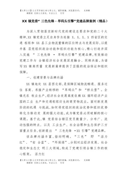 【七哥公文】2025年:XX镇党委“三色先锋·旱码头引擎”党建品牌案例(精品)+更多免费公文+VX:QiGeGongWen2024