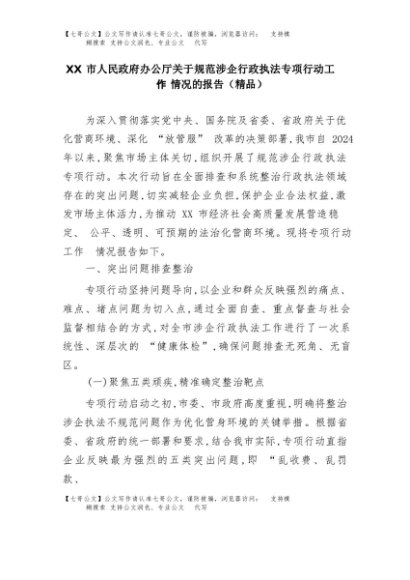 【七哥公文】2025年:XX市人民政府办公厅关于规范涉企行政执法专项行动工作情况的报告(精品)+更多免费公文+VX:QiGeGongWen2024