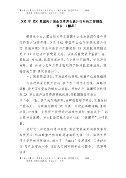 【七哥公文】2025年:XX市XX集团关于国企改革深化提升行动的工作情况报告(精品)+更多免费公文+VX:QiGeGongWen2024