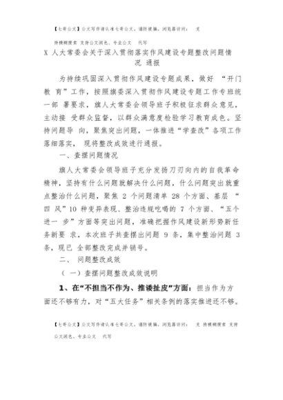 【七哥公文】2025年:X人大常委会关于深入贯彻落实作风建设专题整改问题情况通报+更多免费公文+VX:QiGeGongWen2024