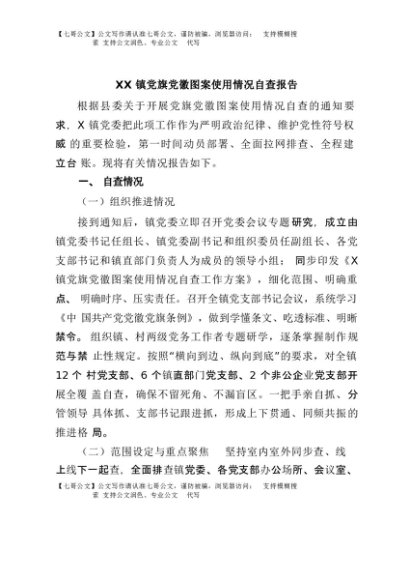 【七哥公文】2025年:XX镇党旗党徽图案使用情况自查报告+更多免费公文+VX:QiGeGongWen2024