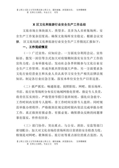【七哥公文】2025年:X区文化和旅游行业安全生产工作总结+更多免费公文+VX:QiGeGongWen2024