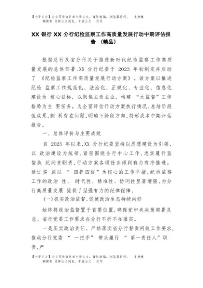 【七哥公文】2025年:XX银行XX分行纪检监察工作高质量发展行动中期评估报告(精品)+更多免费公文+VX:QiGeGongWen2024